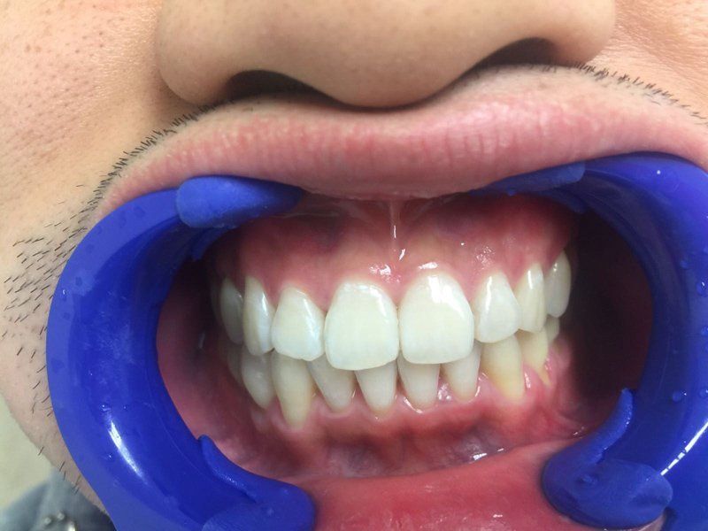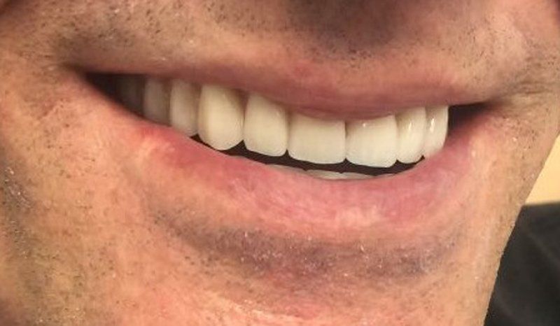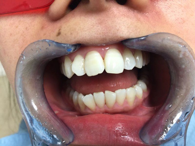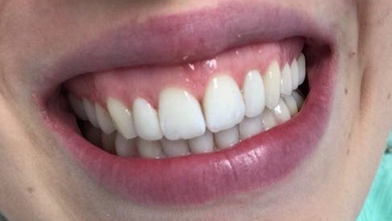 Prima e dopo di miglioramento estetico degli incisivi laterali mediante corone in zirconia.
