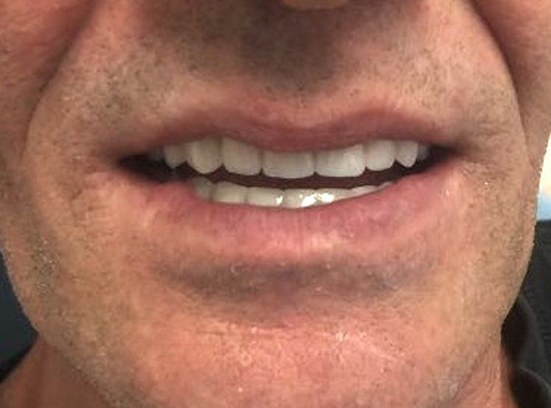 Prima e dopo di riabilitazione con protesi totali su arcate superiore ed inferiore.